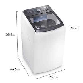 Capacidade e Dimensional: Compacta por fora, espaçosa por dentro, a lavadora possui 14,5Kg de capacidade, mas com dimensão de 12Kg.