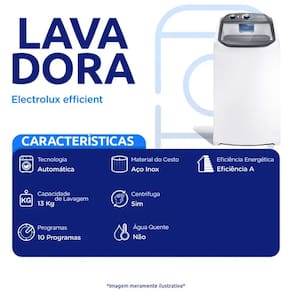 A lavadora Efficient da Electrolux é ideal para quem busca eficiência, capacidade e facilidade no cuidado diário com as roupas. Com 13 kg de capacidade, atende desde peças leves até edredons, tornando-se uma excelente escolha para famílias. Conta com 11 programas de lavagem e funções como Turbo Centrifugação e Limpeza de Cesto, oferecendo flexibilidade para diferentes tipos de roupa. Seu cesto em inox proporciona maior durabilidade e cuidado com os tecidos, e a abertura superior facilita o manuseio, mesmo em espaços compactos. Confira mais detalhes: