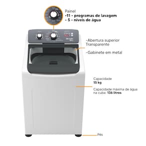 Com abertura superior, 11 programas de lavagem e sistema por agitação, ela garante desempenho eficiente até para edredom casal soft.