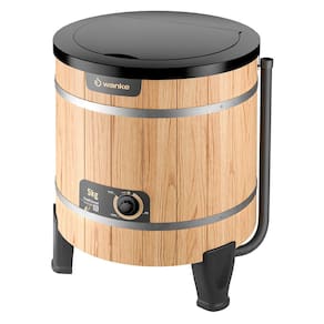 e revestida com verniz natural, o seu painel quanto o tanque interno são em polipropileno, que impedem o contato da água com a madeira.