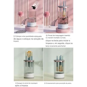 É muito fácil de usar, basta colocar uma quantidade adequada de água, colocar a solução de limpeza, inserir o pincel de maquiagem na unidade principal, iniciar a limpeza e secar após a limpeza.