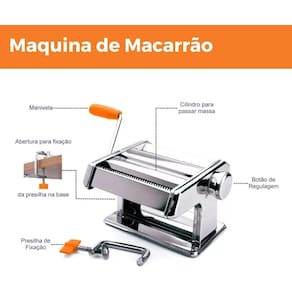 Maquina de Macarrão com Cilindro Aço Inox para Massa CaseiraA Maquina de Macarrão é o utensílio perfeito para o preparo de deliciosas refeições. Com ela você pode preparar 3 tipos diferentes de massa: talharim, espaguete e massa laminada para lasanha.Possui manivela removível e regulador de espessura da massa, possibilitando até 8 espessuras diferentes.Segura e resistente, possui grampo que fixa a máquina na bancada garantindo maior segurança e facilidade no trabalho, pois evita que a máquina se movimente enquanto é operada e é feita em aço inox, que proporciona maior durabilidade e vida útil ao produto.Além disso, a Máquina de Macarrão é Fácil de utilizar e limpar, leve, podendo ser transportada para qualquer local.- Possui 3 regulagens: talharim, espaguete e massa laminada para lasanha- Material: aço- Botão de regulagem de espessura da massa até 8 espessuras diferentes - Espessuras em Polegadas/Milímetros:1 - 0,125 - 3,175 mm2 - 0,95 - 2,413 mm3 - 0,85 - 2,159 mm4 - 0,75 - 1,905 mm5 - 0,65 - 1,651 mm6 - 0,55 - 1,397 mm7 - 0,45 - 1,143 mm8 - 0,35 - 0,889 mm- Diversidade de lâminas para variados tipos de massas- Manivela removível e desenvolvida para gerar menor esforço- Grampo fixador para melhor manuseioDimensões do produto: 20 x 19 x 13 cm C x L x A Comprimento dos rolos: 14 cmPeso: 2,5 kgConteúdo da Embalagem:1 Máquina de macarrão1 Manivela1 Grampo de fixação1 Manual de instruçõesATENÇÃO: Produto destinado exclusivamente para uso e consumo Não vendemos para revendedoresGarantia do vendedor: 30 dias