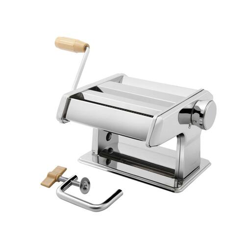 Dimensões da peça: 20 x 19,5 x 13,5 cm Material: Aço inox e Plástico Para limpar a máquina, utilize um pincel e um pano seco Contém: Corpo da máquina / Manivela / Acessório de fixação Comprimento da máquina considerando a manivela: 36 x 19,5 x 13,5 cm Cor: prata