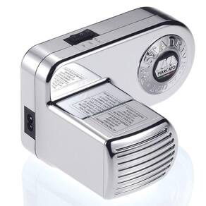 As máquinas manuais de macarrão estão disponíveis em dois tamanhos diferentes de rolos. O primeiro, com 150 mm de comprimento, é adequado para uso doméstico e tem a vantagem de poder ser equipado com a mais ampla gama de acessórios extras.