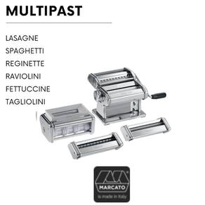 Com a Set Atlas 150 Marcato, você pode facilmente fazer 6 diferentes tipos de massas: lasagne, fettuttine, tagliolini, reginette, raviolini e spaghetti.