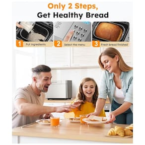 Máquina de Pão OSIPOTO 17 em 1, Inox Prata, Capacidade 907 gramas, Timer 15H, Baixo Ruído, Fácil Limpeza. Motor silencioso de 600W com distribuição de calor uniforme em 360°. Painel digital intuitivo. Cuba antiaderente. Ruído menor que 50dB.Acessórios
