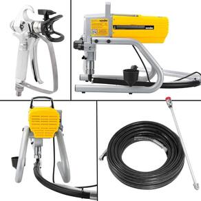 Seu design ergonômico e estrutura reforçada foram pensados para longas jornadas de trabalho. O tubo extensor em alumínio, a mangueira com 15 metros de comprimento e a pistola com bico 517 permitem pintar com agilidade áreas amplas ou de difícil acesso. A máquina também oferece facilidade de transporte, manutenção simples e operação silenciosa diferenciais que fazem a diferença no canteiro de obras ou em reformas residenciais.