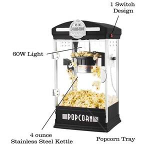 Máquina de pipoca para home theater com panela de aço inoxidável de 113g, faz 5,7 litros de pipoca. Design de mesa compacto, fácil de usar com luz de aquecimento e interruptor de alavanca.Luz indicadora de funcionamento