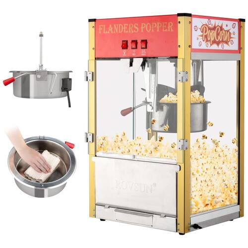 Recomendamos a máquina de pipoca ROVSUN, que possui qualidade premium, operação conveniente, fácil limpeza e durabilidade. Equipada com chaleira de 0,42 gramas, pode fazer até 80 xícaras de pipoca por lote. O estilo antigo e de cinema o torna ideal para festas, noites de cinema, cinemas domésticos, cinemas, carnavais, empresas e assim por diante. Também é uma boa escolha como presente para familiares ou amigos. A chaleira de aço inoxidável com estrutura em liga de alumínio garante a segurança alimentar e protege sua saúde. Os 3 interruptores de controle facilitam a operação e o vidro temperado garante uma operação segura. A chaleira de 0,42 gramas pode ser removida após o uso para facilitar a limpeza. A plataforma de aquecimento mantém a pipoca quente e crocante e uma gaveta pode coletar quaisquer grãos não estourados, o que garante sempre lotes perfeitos. A luz LED interna e a caixa de luz lateral proporcionam uma visão clara e criam uma atmosfera de cinema. A máquina de pipoca comercial vem com 1 colher medidora de pipoca, 1 colher medidora de óleo, 1 colher medidora de milho, 3 copos de pipoca e 1 agitador de energia. É ideal para uso doméstico e comercial em cinema, home theater, festas, etc.