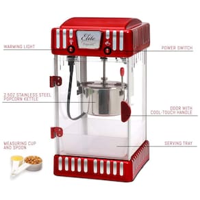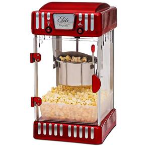 Pipoqueira elétrica estilo retrô para mesa, capacidade de 3,79 litros por lote, sistema de agitação integrado e luz de aquecimento. Ideal para festas e eventos.Luz indicadora de funcionamento