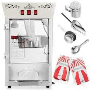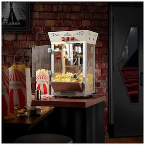 A máquina de pipoca de mesa Olde Midways é perfeita para quem deseja fazer pipoca gourmet estilo cinema em qualquer lugar. Com um design vintage, esta máquina de pipoca de 850 watts tem um motor potente e silencioso e recursos modernizados para operação fácil e conveniente, além de funcionalidade duradoura. A chaleira de 0,35 gramas pode produzir cerca de 15,16 litros de pipoca por lote, o que é ideal para grandes multidões. A máquina de pipoca Olde Midways é perfeita para cinemas domésticos, salas de descanso de escritórios, noites de jogos, carnavais escolares, jogos da liga infantil e muito mais. Além disso, é um ótimo presente para cinéfilos.