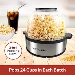 Máquina de pipoca elétrica Nostalgia Classic, faz 24 xícaras, tampa grande que funciona como tigela de servir, tecnologia de aquecimento rápido, para milho e nozes torradas, aço inoxidável