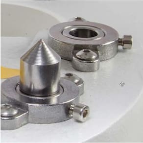 Máquina eletrônica com motor Direct Drive e painel digital com regulagem da força de impacto. Permite o uso de 3 matrizes diferentes para pregar botões, ilhós e rebites. Possui acionamento por pedal, luminária, laser e anel de segurança. Inclui mesa e motor.Funções