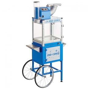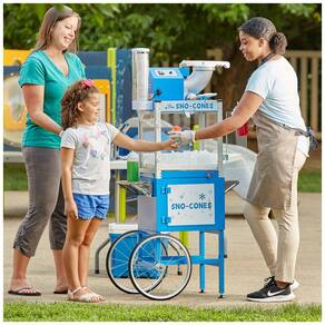 Atraia uma multidão por onde quer que vá com esta unidade móvel perfeita para qualquer local. Com um potente motor de 13,2 cv, ela processa até 226 kg. de gelo por hora. Possui porta de vidro temperado e painéis de acrílico com estrutura de alumínio durável. O carrinho de aço resistente possui rodas traseiras de 40,64 cm, chifre de alumínio fundido resistente, empurrador e cabeça de corte. Fundo inclinado com válvula de drenagem frontal e mangueira de drenagem. Com capacidade para armazenar até 18,14 kg de gelo processado, essa máquina de raspadinha de alta capacidade processa eficientemente até 226 kg de gelo por hora, permitindo atender aos momentos de maior movimento. O carrinho incluso oferece uma maneira excelente de exibir seus sorvetes raspados prontos para consumo e organizar xaropes e suprimentos. Seus clientes certamente vão adorar o design clássico e festivo em aço revestido de pó azul. O carrinho possui uma prateleira lateral perfeita para preparar ingredientes, armazenar xaropes ou expor copos e colheres para venda rápida. Com um botão de reinicialização de segurança, um fundo inclinado, válvula de drenagem frontal e mangueira de drenagem, a limpeza é fácil. Esta unidade ajudará você a servir deliciosas e refrescantes raspadinhas durante todo o verão! As portas de vidro temperado e os painéis de acrílico de alta visibilidade, assim como o dispensador removível de copos e decalque, ajudam a promover o gelo recém-processado. O chifre, cabeça de corte e empurrador de alumínio fundido, juntamente com as lâminas de aço inoxidável, oferecem uma construção durável garantida para durar. As grandes rodas traseiras de 40,64 cm e a área de armazenamento na parte inferior do carrinho tornam esta unidade móvel prática e versátil. A poderosa máquina de 13,2 cv garante que ela possa atender à demanda, enquanto a pá de aço inoxidável de 68 oz. proporciona serviço fácil e higiênico. Requer conexão elétrica de 110V para operação.