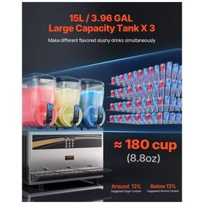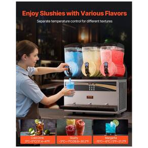 Desfrute de uma variedade de bebidas com a máquina de margarita comercial VEVOR! Com temperatura ajustável de 5°C a 50°C, você pode controlar a consistência das suas bebidas. Com capacidade para 180 copos por lote, graças aos três tanques de 15L. Operação fácil com painel intuitivo, limpeza simples e durabilidade garantida com corpo de aço inoxidável. Ideal para bares, cafés, restaurantes e festas em casa.