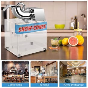 Cabeça de corte dupla para alta eficiência de trabalho Lâminas duplas fornecem eficiência dupla em comparação com as máquinas de lâmina simples. Apresentando lâminas duplas com velocidade de rotação de 1400 execuções , min, esta máquina para cortar gelo tem capacidade de trituração de alta eficiência de cerca de 199 , h. Construção robusta construída para durar Construída com 201 corpo de máquina de aço inoxidável, 430 lâminas de aço inoxidável e recipiente de acrílico espesso, esta máquina de cone de neve apresenta afiação, altamente transparente e inquebrável, pode suportar muitos anos de uso. Design racional com operação fácil e segura A caixa de acrílico mantém o gelo raspado fresco e o orifício de drenagem com o tubo para liberar a água gelada. Além disso, o botão liga , desliga é resistente à água, o que é o suficiente para operar mesmo que suas mãos fiquem molhadas. Fácil de limpar e baixa manutenção Estrutura de aço inoxidável robusta premium é resistente à abrasão de ácido, álcali, óleo e álcool em geral, tornando a máquina de cone de neve inteira fácil de limpar e manter. Você só precisa limpar a sujeira da superfície com um pano úmido limpo. Multiuso para ampla aplicação Lâminas duplas fornecem eficiência de trabalho dupla e você pode usar esta máquina para triturar gelo rapidamente sem muito esforço de acordo com a quantidade solicitada. Ideal para restaurantes, bares, cantinas, quiosques, festas, confraternizações em casa, etc