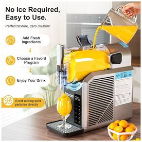 Diga adeus ao congelamento lento! Utilizando a Tecnologia de Congelamento Rápido, nossa máquina de slushy transforma líquidos em slushies e margaritas suaves em 15-60 minutos - sem cubos de gelo necessários. Textura perfeita, sem diluição! Crie bebidas de qualidade de bar com um toque: Slush, Slush com Álcool, Milkshake, Frappé, Suco Congelado, Bebidas Geladas ou Modo Personalizado. Ajuste os níveis de espessura em até 15 para sobremesas para comer de colher ou delícias para beber. Use o modo de ajuste de espessura para personalizar a textura do slushie ao seu gosto. O Modo de Auto-Limpeza remove resíduos automaticamente. O barril, as lâminas e a bandeja removíveis podem ir à lava-louças - menos tempo limpando, mais tempo saboreando! Assim que seu slushie estiver pronto, a máquina muda automaticamente para o Modo de Refrigeração para mantê-lo pronto para servir. Mantém o slushie perfeito por até 4 horas, depois emite um sinal sonoro e desliga - ideal para reuniões improvisadas ou atrasos inesperados. Ideal para festas, noites em família ou para se deliciar sozinho. Encha uma vez e sirva 9 copos de 200ml cada. Adicione ingredientes durante o processo para refis infinitos - sem esperar! Desfrute de suas bebidas congeladas favoritas em apenas 1560 minutos, dependendo dos ingredientes e do volume. Para um slushie perfeito, use açúcar natural e mexa as misturas completamente. Para os amantes de álcool, obtenha resultados ultracremosos com 2,8-16% de álcool, usando coquetéis pré-misturados ou diluindo bebidas alcoólicas. Seja para um churrasco de verão, relaxar à beira da piscina, se refrescar no escritório ou curtir uma festa ao ar livre ou indoor com amigos, nossa máquina de slushie traz alegria gelada e saborosa a cada momento. Fácil de usar, rápido para gelar e projetado para entretenimento em casa! O presente perfeito para Pai, Mãe, esposa, marido, filha, filho, amigos, esta máquina de slushie caseira faz instantaneamente slushies refrescantes para vencer o calor em casa, festas ou feriados, criando facilmente memórias divertidas durante festas infantis ou noites em família, oferecendo opções personalizáveis de coquetéis para adultos a sabores frutados mais saudáveis para todos.