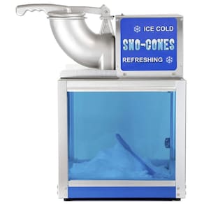 A máquina Arctic Blast Snow Cone possui um motor de 1, 3 HP, 1725 RPM, 635 Watts que pode raspar 226 kg de gelo em cubos ou blocos por hora, tornando esta máquina de gelo raspada perfeita para uma variedade de eventos de venda, incluindo