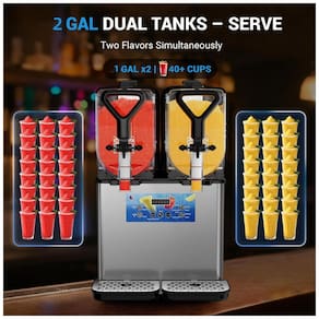Com a Máquina de Bebidas Geladas TUATNUT, você pode preparar slushies, margaritas e outras bebidas geladas rapidamente e de forma eficiente, sem precisar de gelo. Equipada com compressor de cobre puro e tecnologia avançada de silenciamento, congela em até 45 minutos a 40dB, sem perturbar o ambiente. Escolha entre os modos Slushy, Margarita e Cold Drink, ajustando a textura conforme desejado. Feita com aço inoxidável comercial e tanques de PC de qualidade alimentar, é durável e higiênica. Possui capacidade para dois sabores diferentes, iluminação LED inteligente e design à prova de vazamentos. Ideal para uso comercial ou doméstico.