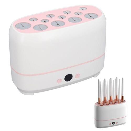 A máquina secadora de pincéis de maquiagem pode secar rapidamente 12 pincéis de maquiagem de uma só vez e 2 esponjas ao mesmo tempo, tornando conveniente e eficiente, o que é adequado para todos os amadores da maquiagem. Também pode secar barbeadores, jóias, etc. É multifuncional, de tamanho pequeno, com design simples, e não ocupa espaço na área de trabalho.
