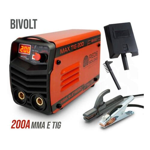Maquina De Solda Inversora ( 200 AMPERES ) Mma Tig Max200DESCRIÇÃO:Quais materiais conseguimos soldar com este equipamento?- MMA – ELETRODOS REVESTIDOS: Aço Carbono, Aço Inox, Ferro Fundido, Alumínio, Metalon, Perfil Metálico, Chapas Automotivas, Carrocerias, Estruturas metálicas entre outros materiais ferrosos!- TIG DC: Aço Carbono, Aço Inox, Ferro Fundido, Metalon, Perfil Metálico, Chapas Automotivas, Carrocerias, Estruturas metálicas entre outros materiais ferrosos!CARACTERÍSTICAS:- Função MMA Eletrodo Revestido;- Função TIG-LIFT (Possibilita a solda de chapas finas e proporciona melhor acabamento final) tocha não inclusa;- HOT-START AUTOMÁTICO (Facilidade de abertura de arco elétrico com vários tipos e diâmetros de eletrodos);- ARC-FORCE AUTOMÁTICO (Controle de estabilidade de arco elétrico inteligente, mantem o arco balanceado com corrente + tensão);- ANTI-STICKING MMA (Não cola o eletrodo na peça de trabalho, dispositivo de aferição rápida e reposta imediata ao curto);- Tecnologia IGBT, potente corrente de solda e baixo consumo de energia elétrica.- Cooler de acionamento continuo (Auxilia no aumento de ciclo de trabalho);- Indicador de proteção térmica (Segurança e inteligência);- Reconhecimento automático de tensão;- Display Digital (Visualização da corrente de solda e configuração precisa);ESPECIFICAÇÕES:- Amperagem Máxima: 200A- Amperagem Mínima: 20A- Potência Máxima (kVA): 5.5- Ligação: Tomada (20A) já instalada- Frequência: 50/60HZ- Voltagem: 127v/220v - Automático- Conector: 9mm- Tensão a Vazio (V): 70 ~ 76- Dimensões: 208 x 85 x 132mm- Peso: 1,850 kg- Hot Start: Automático- Arc Force: Automático- Anti Stick: Automático- Proteção Térmica: SIM- Tecla seletora de processos (tig lift / mma)- Engate Rapido ( - ) para Garra negativa- Engate Rápido (+) para porta do eletrodo.CICLO DE TRABALHO MMA - ELETRODO REVESTIDO ( QUALQUER TIPO )- Eletrodo 2,0mm - 100%- Eletrodo 2,5mm - 100%- Eletrodo 3,2mm - 100%- Eletrodo 4,0mm - 80%- CICLO DE TRABALHO TIGTungstênio - 1.6 - 100%Tungstênio - 2.0 - 100%Tungstênio - 2.4 - 80%ITENS QUE ACOMPANHAM:- 01 – CABO PORTA ELETRODO- 01 – CABO GARRA NEGATIVA- 01 – MÁSCARA DE PROTEÇÃO- 01 – ESCOVA PARA REMOÇÃO DE ESCÓRIA- 01 – MANUAL DE INSTRUÇÕES- 01 – CERTIFICADO DE GARANTIA 12 MESES*IMAGENS MERAMENTE ILUSTRATIVAS*