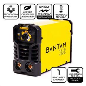 Máquina de Solda Inversora ESAB Bantam 3.2 Bivolt 110v/220v A Máquina de Solda Inversora ESAB Bantam 3.2 traz um novo conceito de máquinas portáteis, com alta tecnologia dos inversores ESAB, ideal para serralheiros e usuários finais que necessitam realizar projetos dentro e fora da oficina. Seguindo a tradição da marca, Bantam é sinônimo de um equipamento seguro, robusto e confiável, capaz de acompanhar o soldador onde o trabalho estiver. ALTO DESEMPENHO - Excelente soldabilidade e fácil abertura de arco com eletrodos E6013. A Bantam 3.2 é ideal para eletrodos de até 3,25mm; BIVOLT - Tensão de alimentação automática de 127V e 220V; PRATICIDADE - Com alça de ombro para transporte, a Bantam é compacta e cabe no armário de ferramentas, em uma mochila e até no baú da moto; PAINEL FÁCIL - Ajuste dos parâmetros de acordo com a bitola do eletrodo, tornando-a mais intuitiva e fácil de regular; ECONOMIA - Alta eficiência energética que garante o menor consumo de energia. Ao escolher a Bantam o soldador conta com e assistência técnica padrão ESAB. Oferecemos 1 ano de e a maior rede de assistência técnica do Brasil, garantindo tranquilidade aos nossos clientes com disponibilidade incomparável de peças, assegurando a manutenção e durabilidade das máquinas.