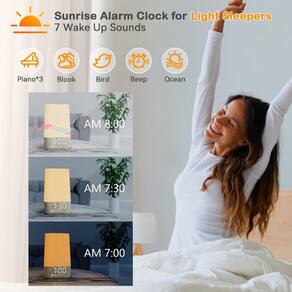 - Experiência natural de despertar do nascer do sol: acorde suavemente com nossa luz simulada do nascer do sol que ilumina gradualmente em 10 a 60 minutos, sincronizando com seus ritmos circadianos para uma manhã tranquila e sem desconforto e melhorando sua rotina diária de despertar.