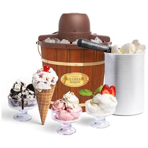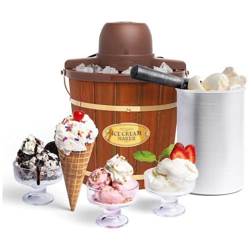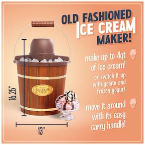 Máquina de sorvete manual com capacidade de 4 litros, design vintage, ideal para preparar sorvetes, iogurtes congelados e gelatos.Bowl de congelamento