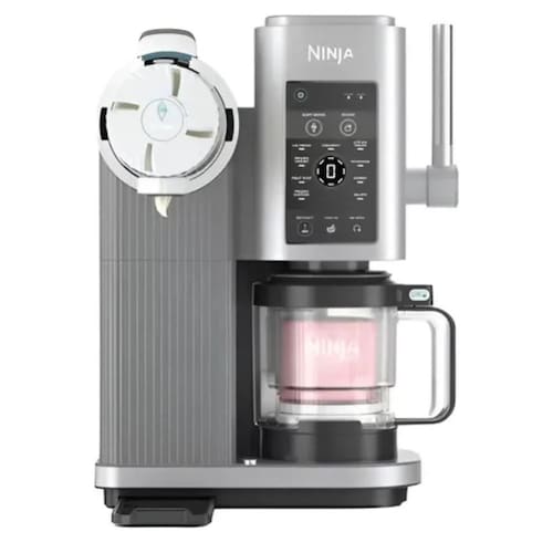 Máquina de sorvete 13 em 1 com dispenser italiano, 2 potes de 480ml com sistema de nozzle, tampa de espiral, haste de dispenser com três velocidades, tigela externa, paddde creamerizer, bandeja coletora e livro de receitas. Motor de 800W. Componentes removíveis (exceto base) são BPA free e podem ir na lava-louças. Permite fazer sorvete em bola e soft serve.Bowl de congelamento