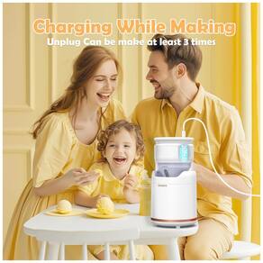 Com tecnologia de baixo ruído, a máquina proporciona uma experiência tranquila na cozinha enquanto você prepara suas guloseimas. A BRIOBITE é recarregável via USB-C, e sua bateria de lítio de 2600 mAh permite fazer sorvete pelo menos 3 vezes com uma única carga.