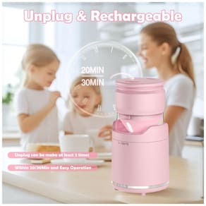 O motor elétrico integrado trabalha em modo automático, com tecnologia de baixo ruído e acionamento por botão único, acoplado a um temporizador embutido e desligamento automático ao final do ciclo. A alimentação é feita por bateria interna de íons de lítio de 2600 mAh, recarregável via porta USB-C, permitindo múltiplos ciclos de uso com uma única carga, além de possibilidade de operação enquanto carrega.
