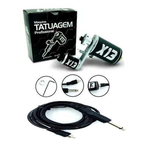 Aqui seu produto segue com Modelo x13 silver rotativa híbrida Marca xtm Conexões rca Motor standart Pm 0 - 15500 rpm Voltagem 0 - 14 volt dc Máximo número de agulha 50 magnum peso 100 gramas Material alumínio Velocidade em torno de 0 á 250 batidas por segundo Curso da agulha 3.5mm Dimensões larg x comprimento x altura 32 x 70 x 99 mm Cabo rca incluso 30 dias de no cabo de 1 ano diretamente com o fabricante Marca: Não Informado Ean: 7896098399866