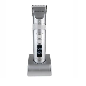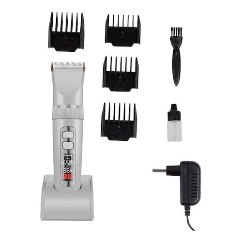 A velocidade do motor chega até 6500 RPM. Display em LCD digital, mostrando nível de bateria e velocidade. A lâmina que vem com a máquina é fabricada em aço, revestida em Titânio, com cortante de cerâmica, que não aquece e, por isso, não fere o animal.