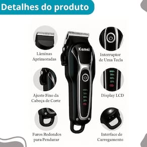Máquina de tosa kemei km-1991 recarregável Descrição do anúncio: A máquina de tosa pet bivolt kemei km-1991 é ideal para tosar animais de pequeno e médio porte de forma eficaz e segura. Equipada com lâmina de aço inoxidável, possui tela lcd digital para monitorar a bateria e opera silenciosamente, garantindo conforto para o pet. Conteúdo da embalagem: Máquina km-1991 Fonte bivolt 4 pentes guia 3mm, 6mm, 10mm, 13mm Bisnaga com silicone Pente Cortador de unhas Lixa Manual do usuário Características: Sem fio Tensão bivolt Potência de 5w Lâminas de aço inoxidável ajustáveis 0,5 mm a 1,0 mm Motor de alta velocidade Carregamento rápido 3 horas Autonomia de até 120 minutos 4 pentes guia 3mm, 6mm, 10mm, 13mm Especificações: Material: abs de alta qualidade Tela lcd Sistema de corte r-shape Tempo de carregamento: 3 horas Tempo de uso: até 120 minutos Tensão de entrada: 5v Corrente: 1000ma Principais perguntas sobre o produto e respostas: 1 é indicada para pets de médio e grande porte Sim, eficaz para animais de qualquer tamanho. 2 o produto é resistente Sim, feito com materiais de alta qualidade e durabilidade. 3 tempo de carregamento da bateria Aproximadamente 3 horas. Marca: Não Informado