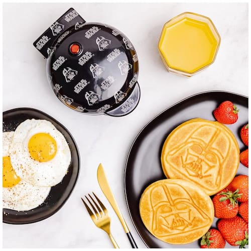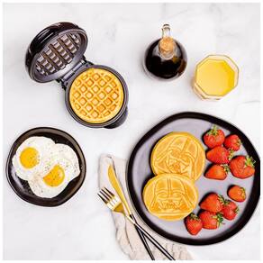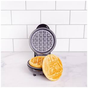 DARTH VADER MINI WAFFLE MAKER Faça waffles de Darth Vader em casa. Despeje a massa, abaixe a tampa e, antes que você perceba, há waffles Vader de prontos para manteiga e calda. DECORAÇÃO DE COZINHA DIVERTIDA As obras de arte de Star Wars nas tampas certamente trarão diversão a qualquer paisagem de cozinha. FAZ UM GRANDE PRESENTE Os mini waffles de Star Wars são a maneira perfeita de trazer a cultura pop para a cozinha de qualquer herói. DETALHES Listado UL r, com placas de waffle antiaderentes e limpas. Projetado para sistemas de 120v nos EUA, Canadá e México. LICENCIADO OFICIALMENTE PELA DISNEY e LUCASFILMS