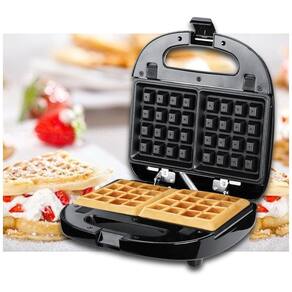 Máquina de Waffle com placas removíveis antiaderentes, luzes indicadoras de funcionamento e pré-aquecimento, design compacto e fácil de limpar.