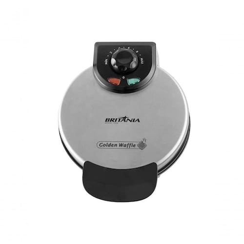 Descricao Maquina Golden Waffle Britania 850WCOD PROD: 64001067- Os melhores waffles serao feitos por voce com a sua Maquina Golden WaffleBritania 850W!- Preprara ate 4 waffles, doces ou salgados, por vez em poucos minutos!- Possue placas antiaderentes que tostam os dois lados por igual;- Base antiderrapante para maior seguranca, evita que o produto se movimente durante o manuseio;- Pode ser guardado na posicao vertical;- E seu controle ajustavel de temperatura permite regular a temperatura de acordo com a necessidade;- Waffles deliciosos preparados por voce, no conforto do seu lar, com a sua Maquina Golden WaffleBritania 850W!*Imagens meramente ilustrativas.Especificacao Tecnica Dimensoes do produtoAltura do produto 10,8 cmLargura do produto 20 cmComprimento do produto 24,5 cmPeso do produto 1,218 kgDimensoes de envio do produtoAltura com embalagem27 cmLargura com embalagem21 cmComprimento com embalagem 13 cmPeso com embalagem1,388 kg
