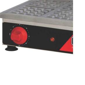 Sua estrutura é confeccionada em aço inoxidável com duas chapas em alumínio fundido de 18,5 de diâmetro. Possui termostato com controle de temperatura que vai de 0 a 300C e lâmpada piloto para indicar quando a temperatura desejada é atingida. A waffeleira conta com puxador antitérmico para que o operador possa manusear o equipamento com segurança.