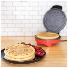 Todos os fãs de Pokémon vão adorar a Máquina de Waffle Bulbasaur da Uncanny Brands. Transforme seu café da manhã com um toque do universo Edição de Bolso Monster usando esta máquina de waffles antiaderente. Seja para waffles dourados e crocantes ou macios e dourados, o termostato regulado e a tampa com peso garantem um aquecimento uniforme, enquanto as luzes indicadoras duplas ajudam a saber exatamente quando adicionar a massa e quando os waffles estão prontos.