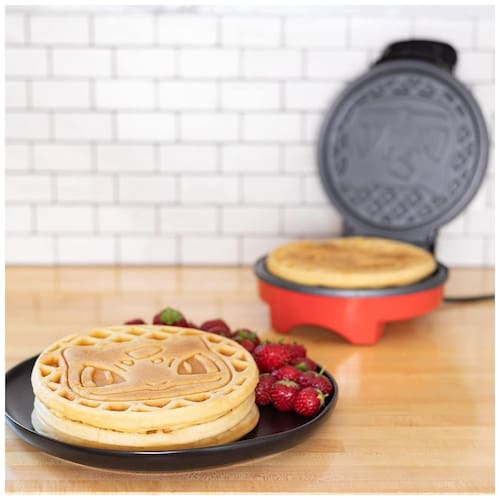 Máquina de Waffle, Tema Pokémon Bulbasaur com Revestimento Antiaderente, 110V 900W, Uncanny Brands, Preto e Vermelho