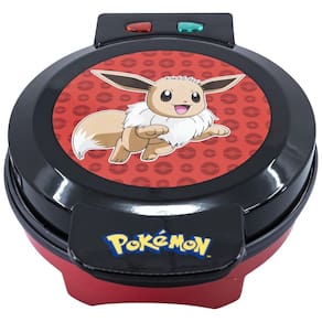 Todos os fãs de Pokémon vão adorar a Máquina de Waffle Eevee da Uncanny Brands. Transforme seu café da manhã em uma aventura no universo dos Edição de Bolso Monsters com esta máquina de waffle antiaderente. Seja para waffles dourados e crocantes ou macios e dourados, o termostato regulado e a tampa com peso garantem um aquecimento uniforme. As luzes indicadoras duplas ajudam a saber o momento certo para adicionar a massa e retirar os waffles.