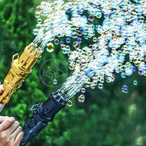 É fácil de usar: Em um recipiente, despeje a água e coloque sabão, mergulhe o brinquedo de bolha e é só pressionar.