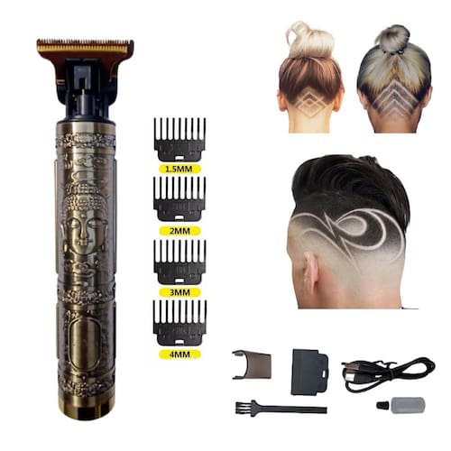 Maquina elétrica usb buda para acabamento desenhos riscos pezinho de cabelo pelos da pernas braços barba e bigode A máquina possui bela aparência, leve, portátil, durável, confortável em seu manuseio, com corte bem rente e sem machucar a pele. Indicado para desenhos e riscos no cabelo, acabamento, pezinho, aparar pelos e barba. Especificações do produto: - lâmina de alto desempenho, aço inoxidável, afiada e durável - tubo de metal - carregamento via usb - tensão de entrada: dc 5v 1a - utilizar para seu carregamento uma fonte de energia elétrica de no máximo 5v de 1a para não danificar o produto. não incluso - potência: 5w - tempo estimado de carga: 3 horas estará totalmente carregada quando a luz indicadora estiver com a cor verde - tempo estimado de uso: 3 horas - possui um bateria interna de lítio modelo 1200mah 18650 - medidas do produto: 15,8cm de comprimento x 4cm de largura - peso total do produto: aproximadamente 222 gramas - medidas do cabo usb: aproximadamente 50cm Quando a máquina parar de funcionar, procure um profissional para a possibilidade de troca da bateria.
