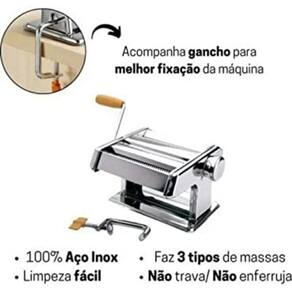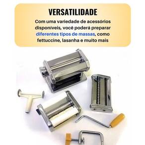 Máquina Fazer Macarrão Massas Manual Cilindro Abrir Italiana Fresca Cortador 3 Tipos Aparelho Lasanha Completa Artesanal prepare-se para revolucionar a maneira como você faz massas em casa A Máquina de Macarrão Cilindro Aço Inox Massa Caseira Espaguete é a solução perfeita para amantes da culinária italiana que querem criar pratos deliciosos e autênticos. Confira alguns motivos para adquirir a sua: - Aço Inox de alta qualidade: Fabricado com materiais resistentes e duráveis, o cilindro de aço inox garante uma longa vida útil ao produto. - Versatilidade na cozinha: Crie massas de espaguete, lasanha, fettuccine e muito mais com facilidade e rapidez. - Ajuste de espessura: Com 9 opções de ajuste, você pode escolher a espessura ideal para sua massa, dando a ela a textura perfeita. - Faça massas caseiras: Surpreenda sua família e amigos com massas fresquinhas e saborosas, feitas por você mesmo, valorizando momentos especiais à mesa. - Compacta e fácil de guardar: Seu design compacto facilita o armazenamento e poupa espaço na cozinha. - Limpeza simples: A máquina é fácil de desmontar, tornando a limpeza rápida e prática. - Satisfação garantida: Não fique satisfeito com o produto Sem problemas Oferecemos uma de 30 dias para devolução. Não perca mais tempo Adquira já a sua Máquina Macarrão Cilindro Aço Inox Massa Caseira Espaguete e descubra o prazer de preparar massas deliciosas e frescas no conforto da sua casa. ESPECIFICAÇÕES: - Material: Aço Inox, Aço Carbono, Ferro Zincado, ABS - Dimensões: 20cm largura x 15cm profundidade x 12,5cm altura - Espessura Mínima: 1mm - Espessura Máxima: 9mm Vem com: 1 Rolo de Massa, 1 Cilindro de Corte, 1 Manivela, 1 Grampo de Fixação - CONTÉM:01 Máquina de Massas em Aço Inox