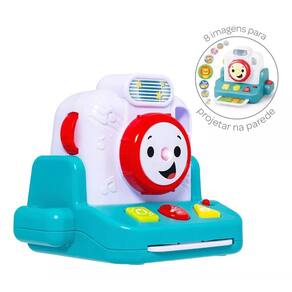 A Máquina Fotográfica com Projetor da Buba chegou para fazer a alegria dos pequenos! Conta com 8 diferentes imagens para serem projetadas na parede, 3 botões em formatos geométricos que ao serem apertados emitem diferentes sons e uma foto lenticular que altera a imagem por movimento.Um brinquedo ideal para desenvolver os sentidos do pequeno por meio dos estímulos visuais, táteis e sonoros.1. gire o anel para alterar a imagem projetada2. projetor3. sons de animais e músicas infantis4. volume5. foto com efeito especial6. aperte para visualizar a foto7. liga/desliga8. sons de máquina fotográfica