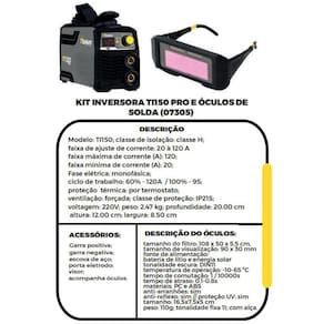 Kit inversora ti150 pro 220v + óculos de solda escurecimento automático 07305
