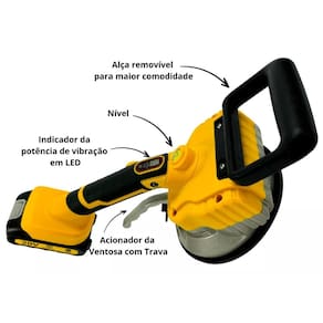 Máquina para Assentamento de Pisos e Cerâmicas Charbs CH00288 com 2 Baterias de Alta Duração - Ventosa de Alta Potência e Controle Avançado de Vibração A Máquina para Assentar Pisos Charbs 00288 foi projetada para facilitar e agilizar a instalação de porcelanatos, mármores e pisos lisos de grandes dimensões, oferecendo precisão e eficiência. Com uma ventosa de 160mm e capacidade de carga de até 100kgf, essa ferramenta permite um assentamento seguro e profissional, especialmente indicada para pisos de até 230cm x 230cm. Equipada com motor potente de 200W e bateria de Íons de Lítio de 20V DC 2,0Ah , essa máquina oferece mobilidade e longa duração, garantindo praticidade e alta performance em ambientes de trabalho intenso. Benefícios e Diferenciais - 2 Baterias de Alta Duração: mantenha o fluxo de trabalho ininterrupto com uma bateria extra, ideal para operações prolongadas sem necessidade de recarga imediata. - Autonomia Avançada: baterias de Íons de Lítio de 20V DC, recarregáveis em cerca de 2 horas, proporcionando praticidade e alta performance. - Fonte Bivolt Automático: compatível com redes de 100V a 240V, sem necessidade de adaptadores. - Capacidade de Carga de 100kgf: segurança garantida ao manusear pisos grandes e pesados. - Controle Total da Vibração: motor potente de 200W com 9 níveis ajustáveis, permitindo uma aplicação precisa em diferentes tipos de pisos e tamanhos. - Portabilidade e Ergonomia: inclui maleta de transporte e alça frontal removível para maior flexibilidade e conforto no uso, além de punho auxiliar para uso confortável e seguro. Ficha Técnica - Marca: Charbs - Modelo: 00288 - Capacidade de Carga: 100kgf - Diâmetro da Ventosa: 160mm - Potência do Motor: 200W - Tipo de Bateria: Íons de Lítio, 20V DC, 2,0Ah inclui 2 unidades - Tempo de Recarga: aproximadamente 2 horas - Níveis de Vibração: 9 níveis ajustáveis de potência - Oscilação Máxima do Motor: 10.000 rpm/min - Tensão de Entrada da Fonte: Bivolt Automático 100V - 240V - Frequência da Fonte: 60Hz - Indicação de Uso: pisos lisos até 230cm x 230cm - Dimensões da maleta: 38 x 30 x 20cm - Peso bruto: 3,8Kg - Garantia: 90 dias Itens Inclusos - 1 Máquina para Assentamento de Pisos Charbs 00288 - 2 Baterias de Íons de Lítio 20V DC - 2,0Ah - 1 Maleta para Transporte - 1 Fonte Bivolt Automático - Manual do Usuário em Português com Certificado de Garantia A Máquina de Assentamento de Pisos Charbs 00288 com 2 baterias é a escolha ideal para quem busca praticidade, autonomia e excelência nos trabalhos de instalação e acabamento, assegurando alto desempenho e durabilidade em cada aplicação.