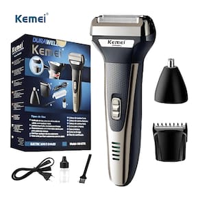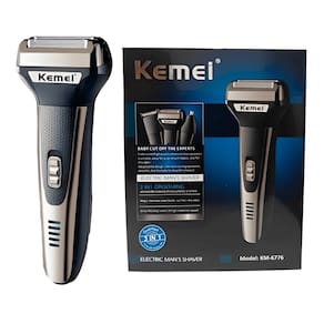 Máquina para Depilar Barbear e Aparar Barba Super Kemei 3 em 1 RecarregávelTenha um visual elegante e bem cuidado com a Máquina para Depilar Barbear e Aparar Barba, Kemei 3 em 1, uma máquina de cortar cabelo, barbeador e aparador de pelos do nariz recarregável, que combina design aerodinâmico e ergonômico para uma experiência única de corte.Com o barbeador de cabeças flutuantes e sistema de ação individual, o Kemei 3 em 1, é possível obter um corte suave e preciso, além de deixar os pelos lisos como corte com lâminas de barbear.Praticidade na hora de trocar as cabeças do barbeador elétrico e uma recarga recomendada de 8 horas, o Kemei 3 em 1 é a perfeita para quem busca um produto completo, de alta qualidade e fácil de usar.Não perca mais tempo e dinheiro adquira agora o Aparador de pelos Kemei 3 em 1 e tenha um visual impecável sempre que quiser.Características:- Marca: Kemei- Modelo Número: KM-6776(PRATA)- Alimentação: Recarregável- Característica: Lâmina dupla- Utilização: Corpo, Barba, Bigode, Cabelo- Tempo de uso: Até 60 Minutos- Tempo de Carga: 8 horas- Voltagem: Bivolt (100 - 240V)- Potencia nominal: 3W- Material: ABS + Stainless Steel- Tamanho: 16,5 cm x 6,5 cm- Tipo de Item: Barbeador Elétrico, Aparador de Pelos e Cortador de CabelosItens Inclusos:1 Maquina Kemei KM-6776(PRATA)1 Cabo de carregamento1 Pincel de limpeza1 Cabeça para barbear1 Cabeça aparador de pelos de Nariz1 Cabeça cortador de cabelo