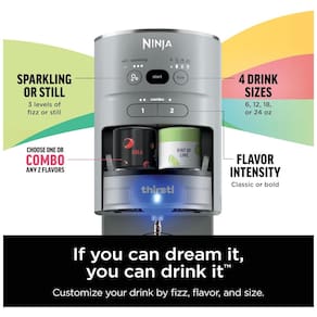 Conheça o sistema de bebidas Ninja Thirsti, que permite personalizar o sabor e a efervescência para criar milhares de bebidas com e sem gás com apenas um toque de botão. Com 4 funções diferentes, 20 sabores, 2 intensidades de sabor, 3 níveis de efervescência e 4 tamanhos de bebida, é possível personalizar facilmente o gás, a função, o sabor, a intensidade do sabor e o tamanho da bebida. Dispense diretamente em seu copo ou garrafa favorita e desfrute de um único sabor ou combine dois sabores para criar sua bebida exclusiva. O sistema conta com quatro linhas únicas e emocionantes de sabores Splash, Vitamins, Hydrate e Energy, que são naturalmente aromatizados com outros sabores naturais e não possuem calorias ou açúcar por porção clássica de 0,42 gramas. Além disso, ao substituir garrafas plásticas descartáveis pelo Ninja Thirsti, você pode economizar até 1.000 garrafas plásticas ao longo do ano. O sistema é fácil de instalar e reabastecer o recipiente de CO2, além de ser projetado para fornecer carbonatação mais eficiente em comparação aos principais concorrentes. Ao fazer a transição para o Ninja Thirsti, é possível economizar até 50 em bebidas enlatadas e engarrafadas de plástico. O pacote inclui a estação Ninja Thirsti, reservatório de água removível sensível à temperatura de 1,69 gramas, cilindro de CO2 de 60L e uma variedade de gotas de água aromatizadas.
