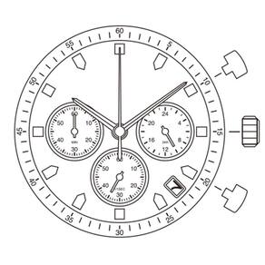 Máquina cronógrafo com ponteiros laterais no 3 - 6 e 9. Mecanismo Para Relógio Miyota OS20 com funções na posição 3hrs 24 horas , na posição 6hrs segundos , na posição 9hrs cronógrafo dos minutos , cronógrafo do segundo central e calendário na posição 4hrs Marca: Não Informado Ean: 7908289211830